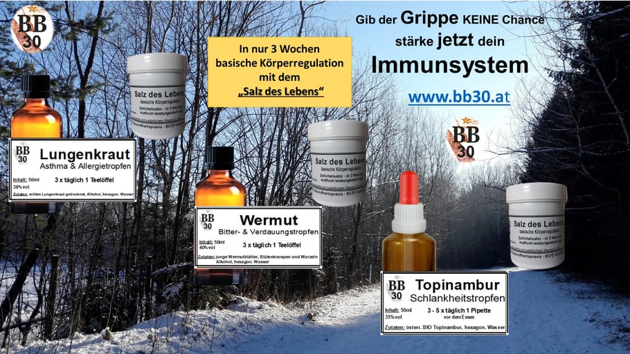 Unsere Naturprodukte von BB30 werden nach bestem Wissen und Gewissen hergestellt und deren Wirkungsweise ist in allen Kräuter- und Naturheilkunderatgebern