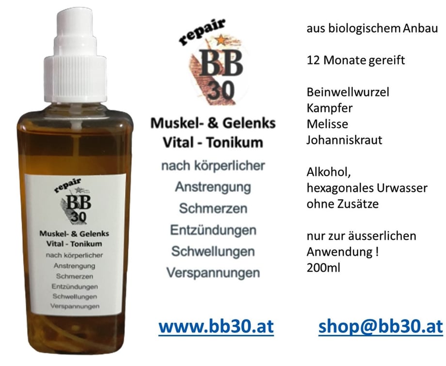 "bb30 repair" nach körperlicher Anstrengung, Schmerzen, Entzündungen, Schwellungen, Verspannungen!